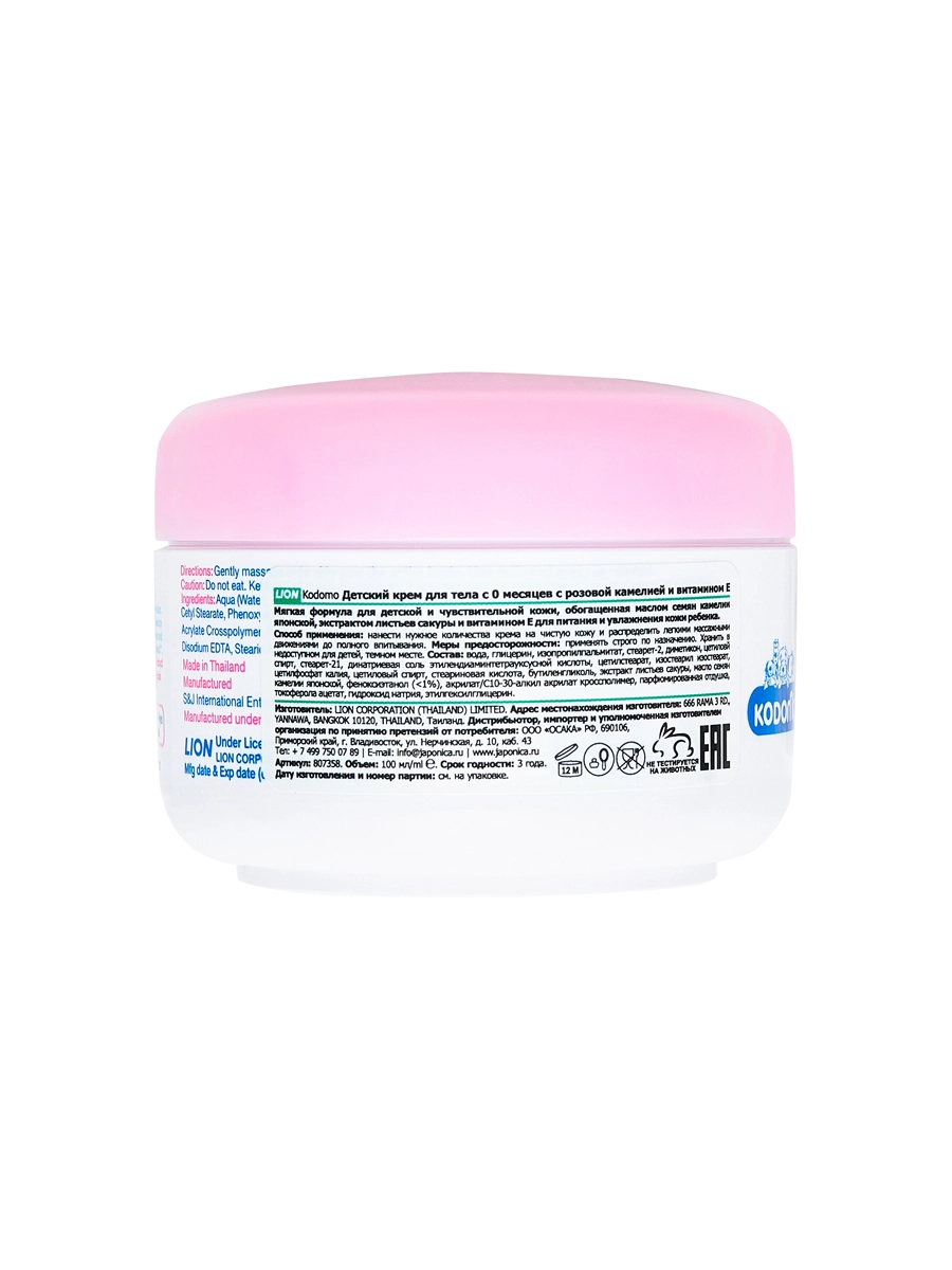 Детский крем для тела с розовой камелией и витамином Е 0+, 100 мл