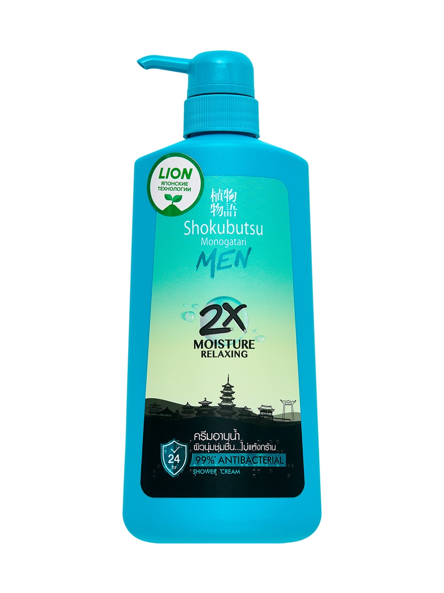 LION Shokubutsu мужской расслабляющий крем-гель для душа с экстрактом водорослей 450 мл: