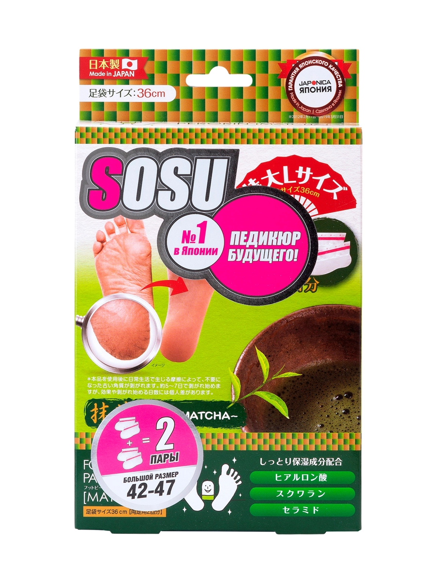 SOSU Носочки для педикюра мужские с ароматом зеленого чая 2 пары: