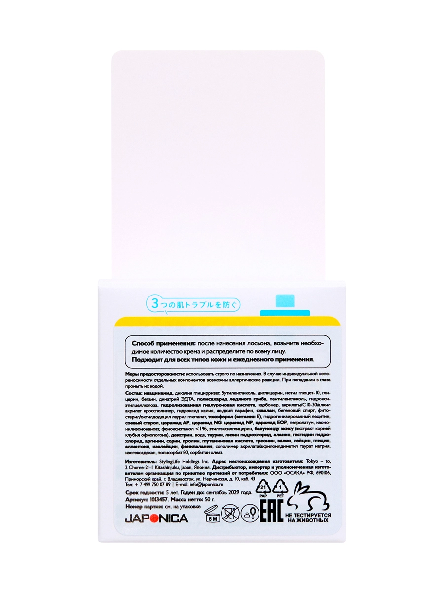 Ниацинамид, дикалия глицирризат, бутиленгликоль, диглицерин, метил глюцет-10, глицерин, бетаин, динатрий ЭДТА, полисахарид ледяного гриба, пентиленгликоль, гидроксиэтилцеллюлоза, гидролизованная гиалуроновая кислота, карбомер, акрилаты/С10-30/ алкил акрилат кроссполимер, гидроксид калия, жидкий парафин, сквалан, бехениловый спирт, фитостерил/октилдодецил лаурил глютамат, токоферол (витамин Е), гидрогенизированный лецитин, глицин сои, церамид AP, церамид NG, церамид NP, церамид EOP, петролатум, изононилизононаноат, феноксиэтанол <1%, этилгексилглицерин, бакумондо экису (экстракт корней клубня офиопогона), декстрин, вода, таурин, лизин гидрохлорид, аланин, гистидин гидрохлорид, аргинин, серин, пролин, глутаминовая кислота, треонин, валин, лейцин, глицин, аллантоин, изолейцин, фенилаланин, сополимер акрилата/акрилоилдиметил таурат натрия, изогексадекан, полисорбат 80, сорбитан олеат.