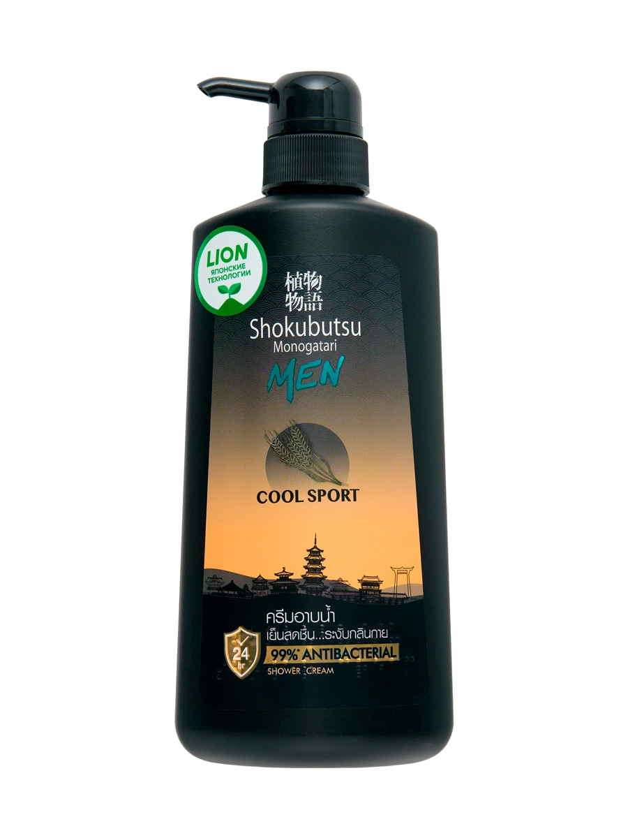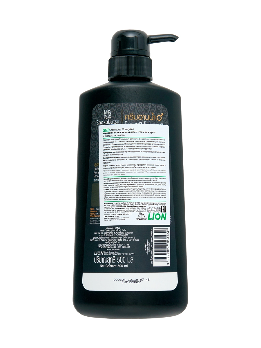 LION Shokubutsu Мужской освежающий крем-гель для душа с экстрактом солода, 500 мл