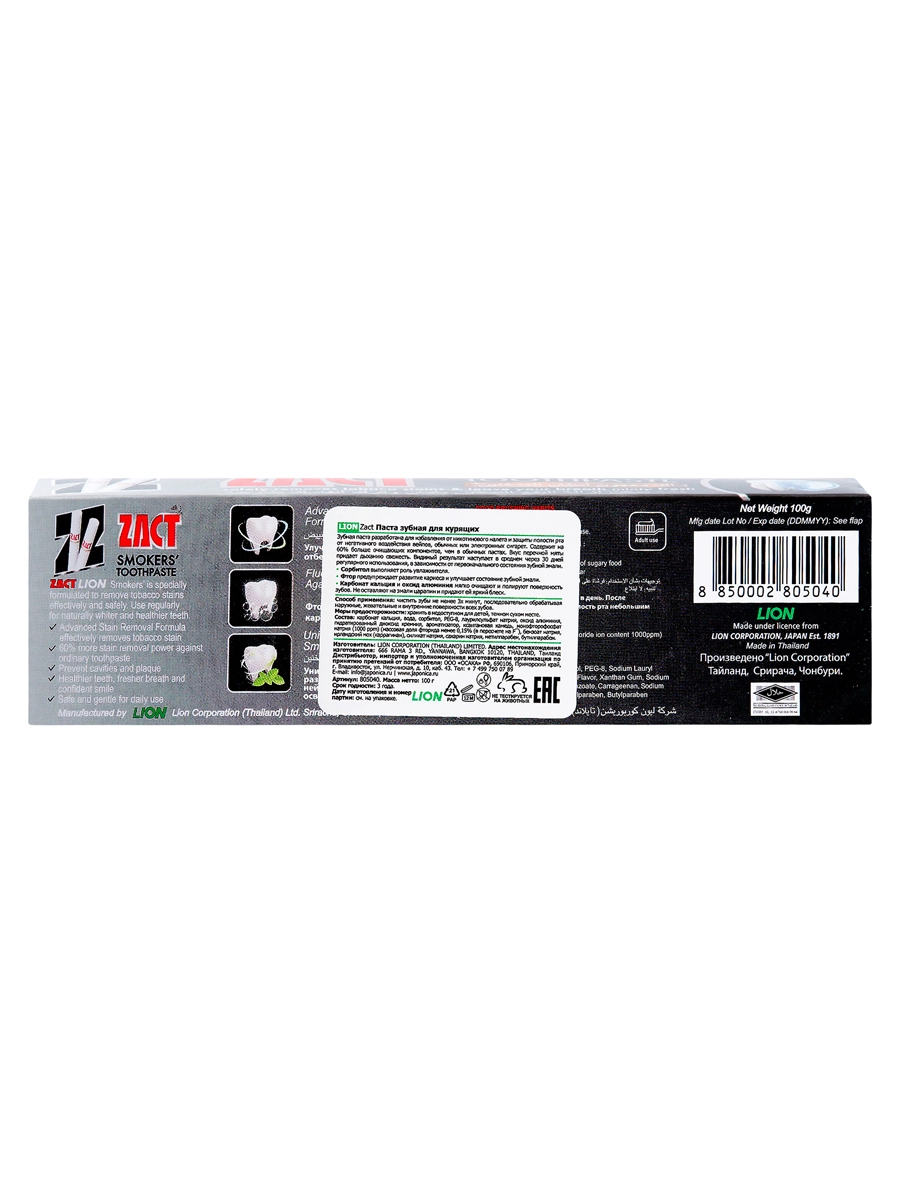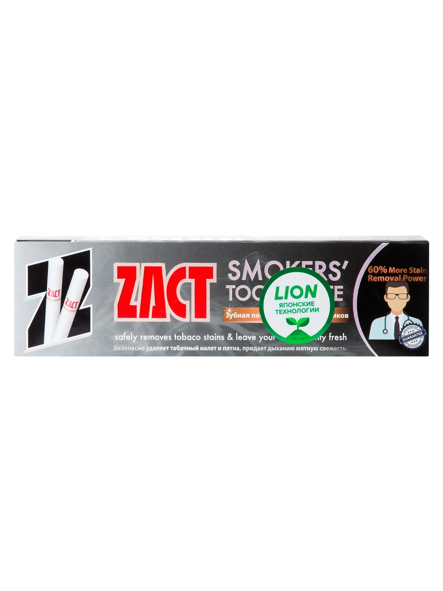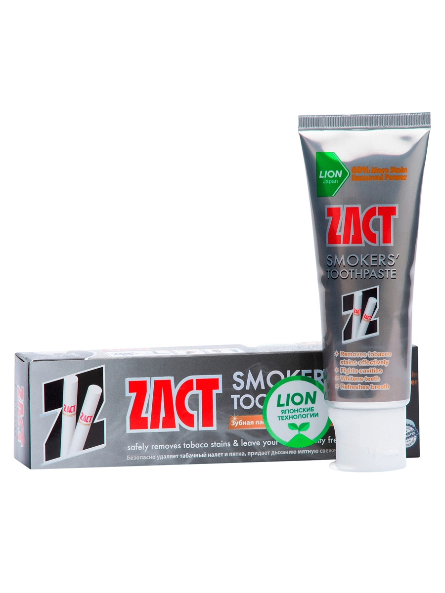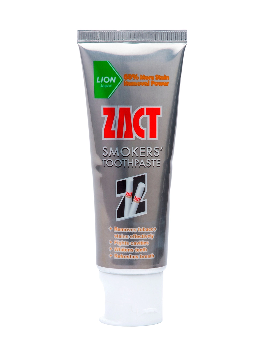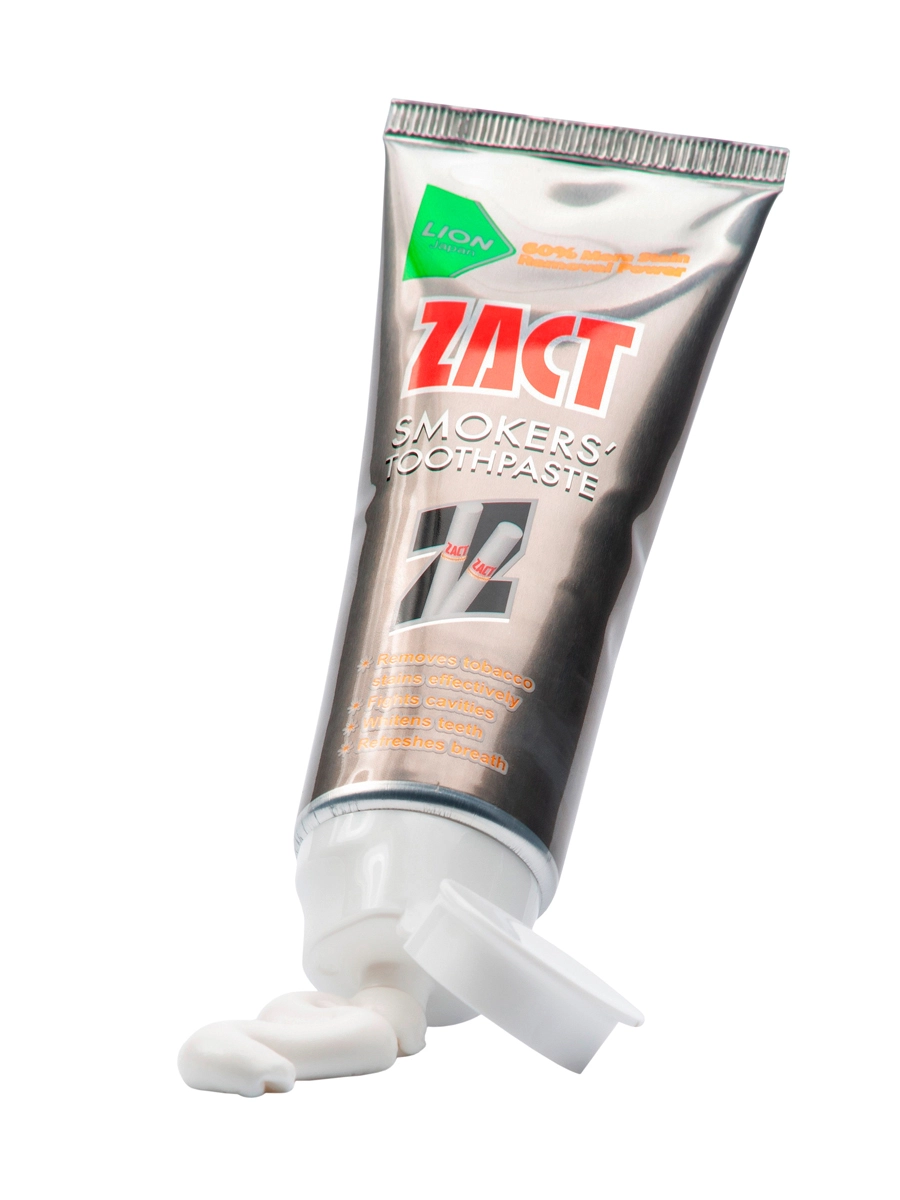 Зубная паста Lion Zact специально разработана для избавления от никотинового налета и защиты полости рта от негативного воздействия вейпов, обычных или электронных сигарет*. Содержит на 60% больше очищающих компонентов, чем в обычных пастах. Вкус перечной мяты придает дыханию свежесть и предотвращает появление неприятного запаха изо рта. RDA: около 70.