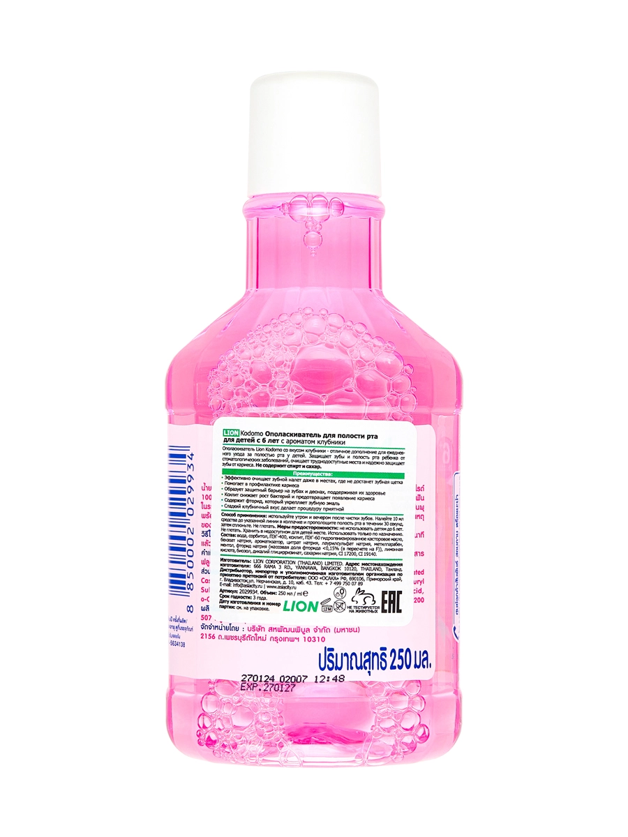 Ополаскиватель для полости рта Lion Kodomo для детей с 6 лет. Защищает зубы и полость рта ребенка от стоматологических заболеваний, очищает труднодоступные места и надежно защищает зубы от кариеса. Жидкий раствор проникает в те места, куда дети не могут добраться щеткой - это ускоряет заживление ранок при смене молочных зубов. Образует защитный барьер на зубах и деснах. В сочетании с зубной щеткой и пастой это позволяет сохранить зубы здоровыми и крепкими.