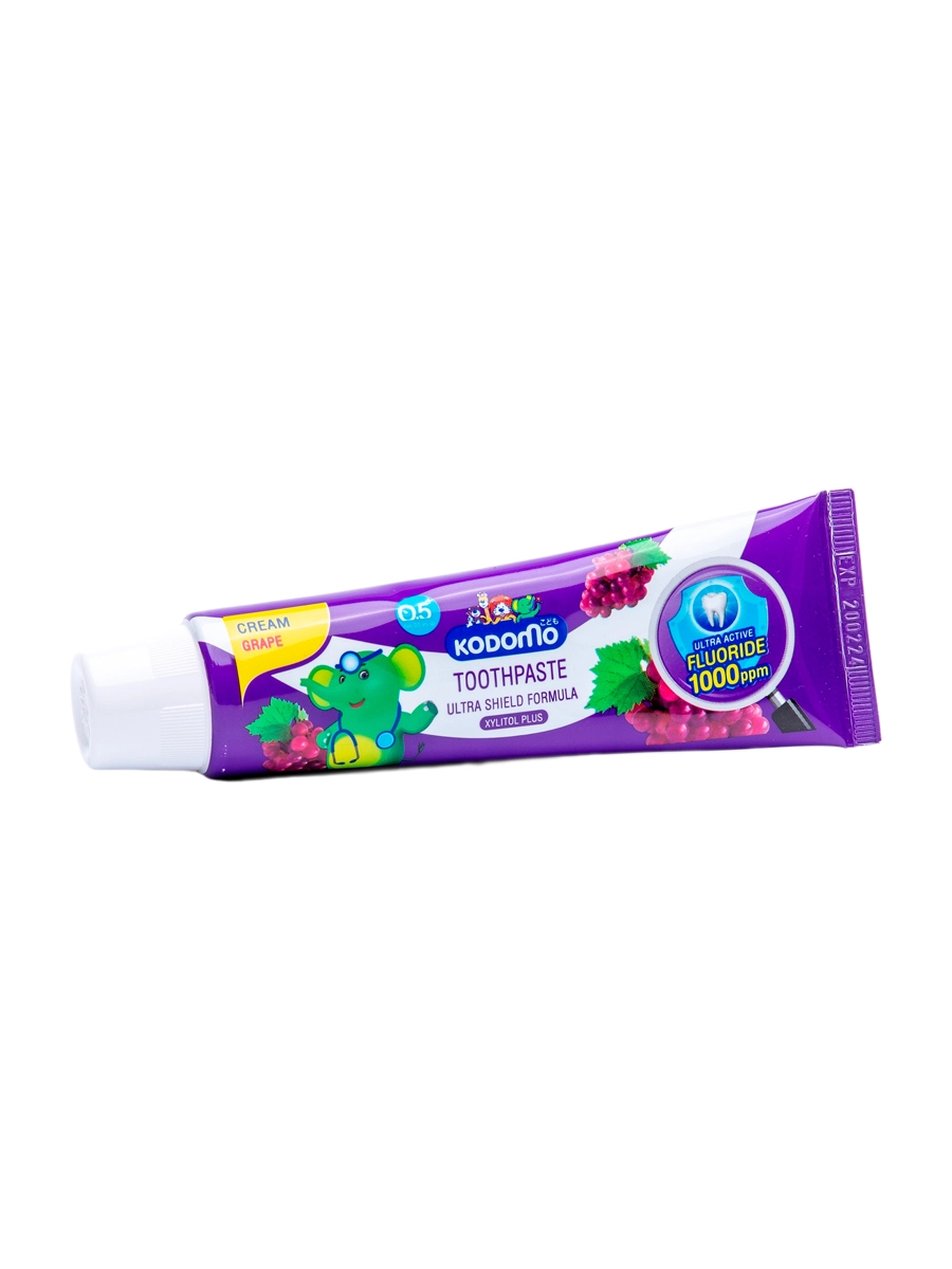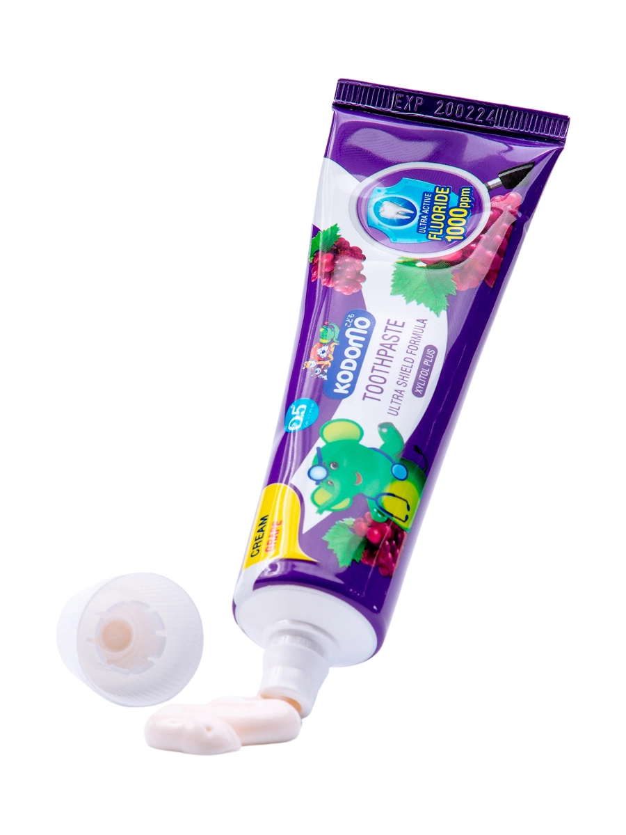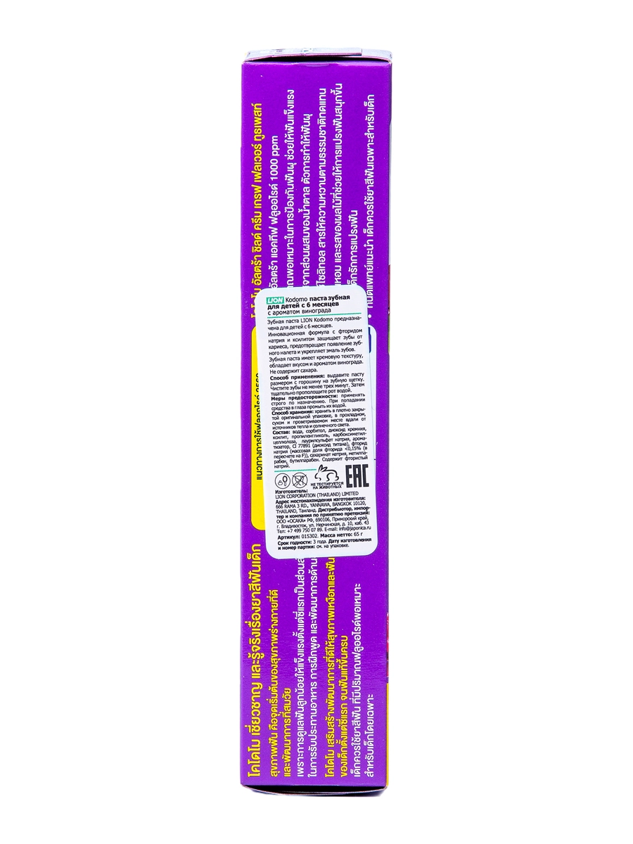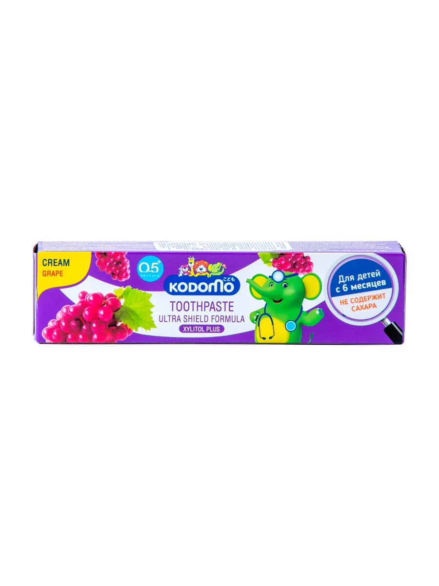 Кремовая зубная паста Lion Kodomo для детей с 6 месяцев. Инновационная формула c фторидом натрия и ксилитом защищает зубы от кариеса, предотвращает появление зубного налета и укрепляет эмаль зубов. Обладает нежным вкусом и ароматом винограда - это поможет привить ребенку привычку регулярной чистки зубов.