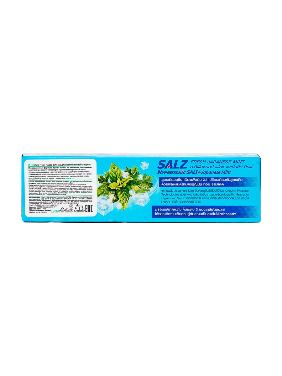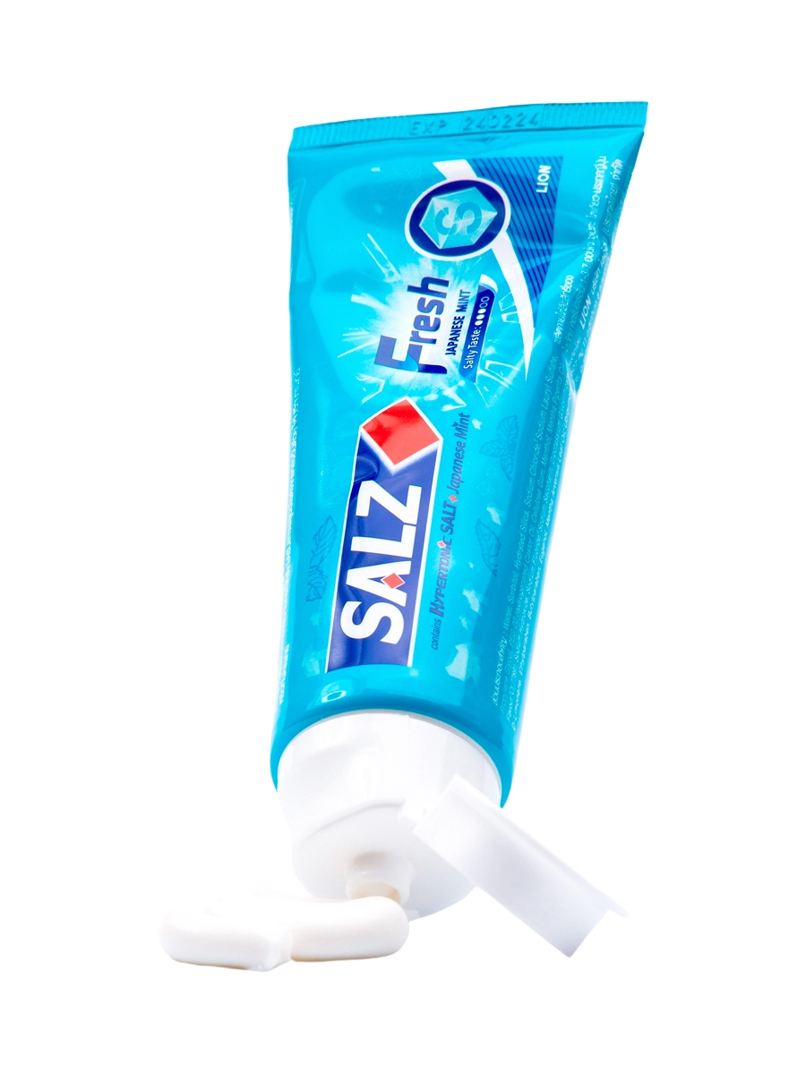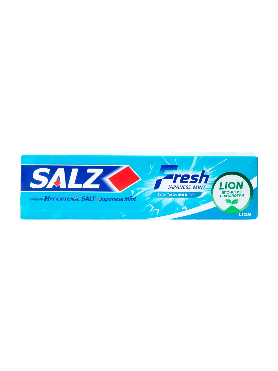 Зубная паста Lion Salz для комплексной защиты полости рта и борьбы с неприятным запахом изо рта. При ежедневном применении укрепляет десна и зубы. Содержит сразу несколько активных компонентов: гипертоническую соль, коэнзим Q10 и фтор для подавления бактерий, вызывающих заболевания десен. Сочетание японской и перечной мяты надолго освежает дыхание и придает пасте насыщенный мятно-соленый вкус. Степень соли: ⅗. RDA: около 70.
