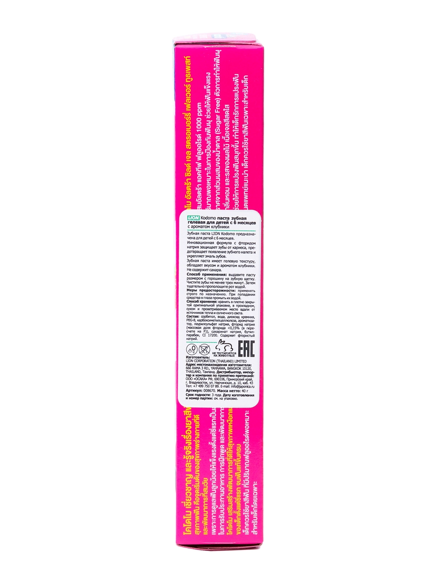 Гелевая зубная паста Lion Kodomo для детей с 6 месяцев. Инновационная формула c фторидом натрия защищает зубы от кариеса, предотвращает появление зубного налета и укрепляет эмаль зубов. Обладает нежным вкусом и ароматом клубники - это поможет привить ребенку привычку регулярной чистки зубов.