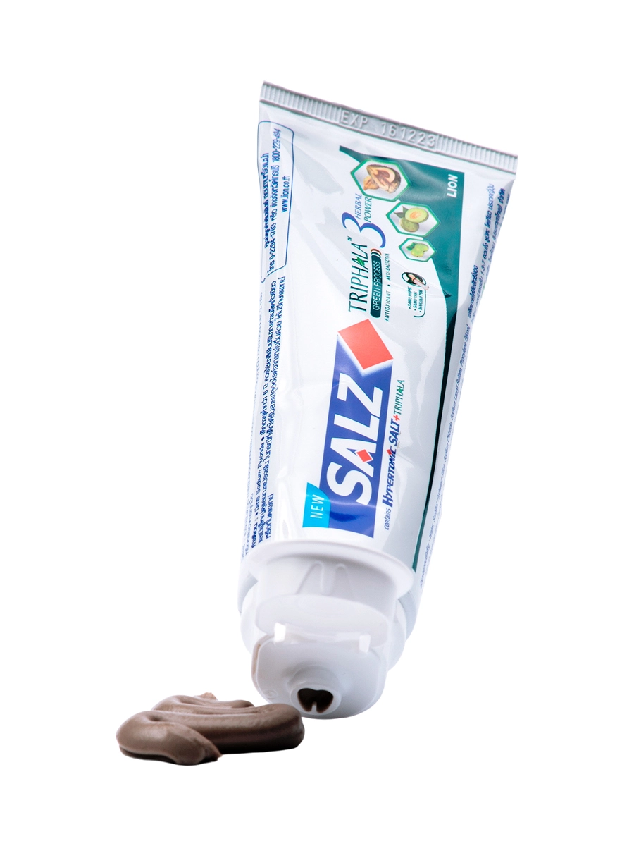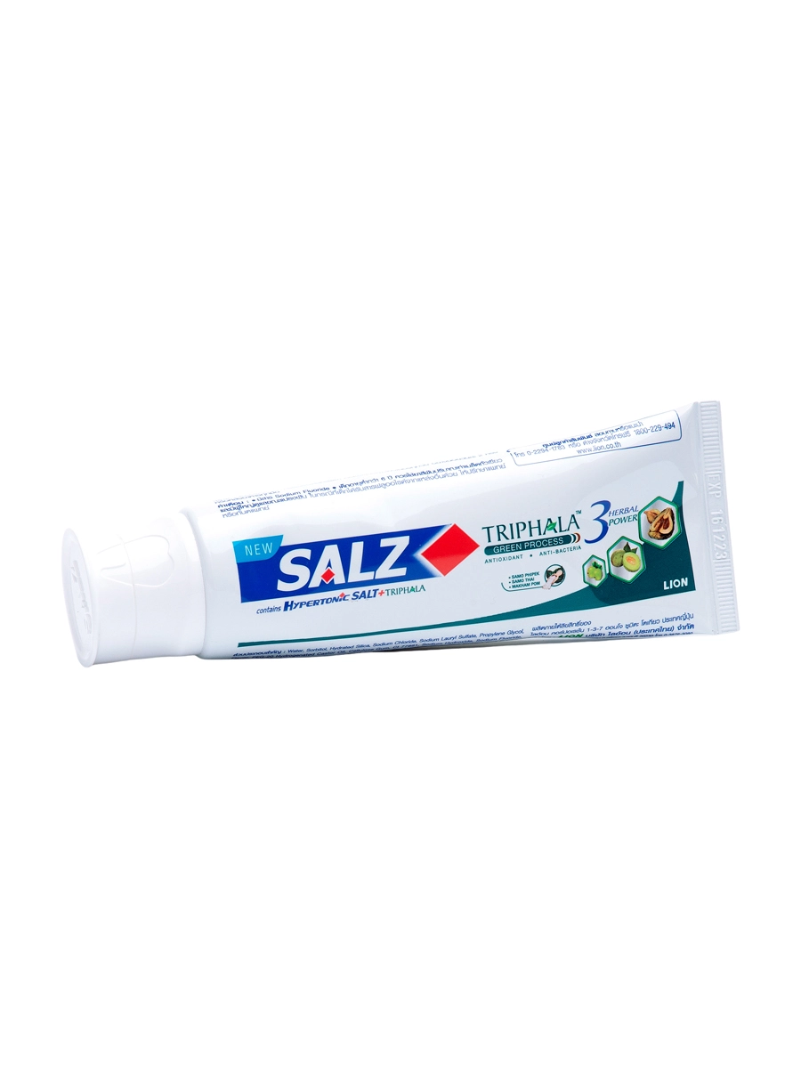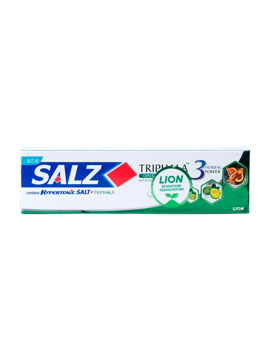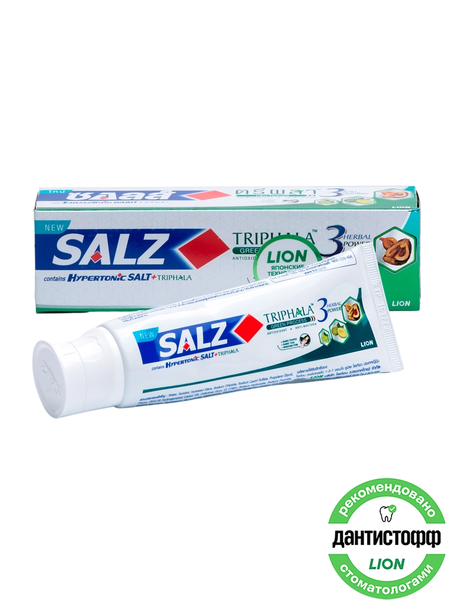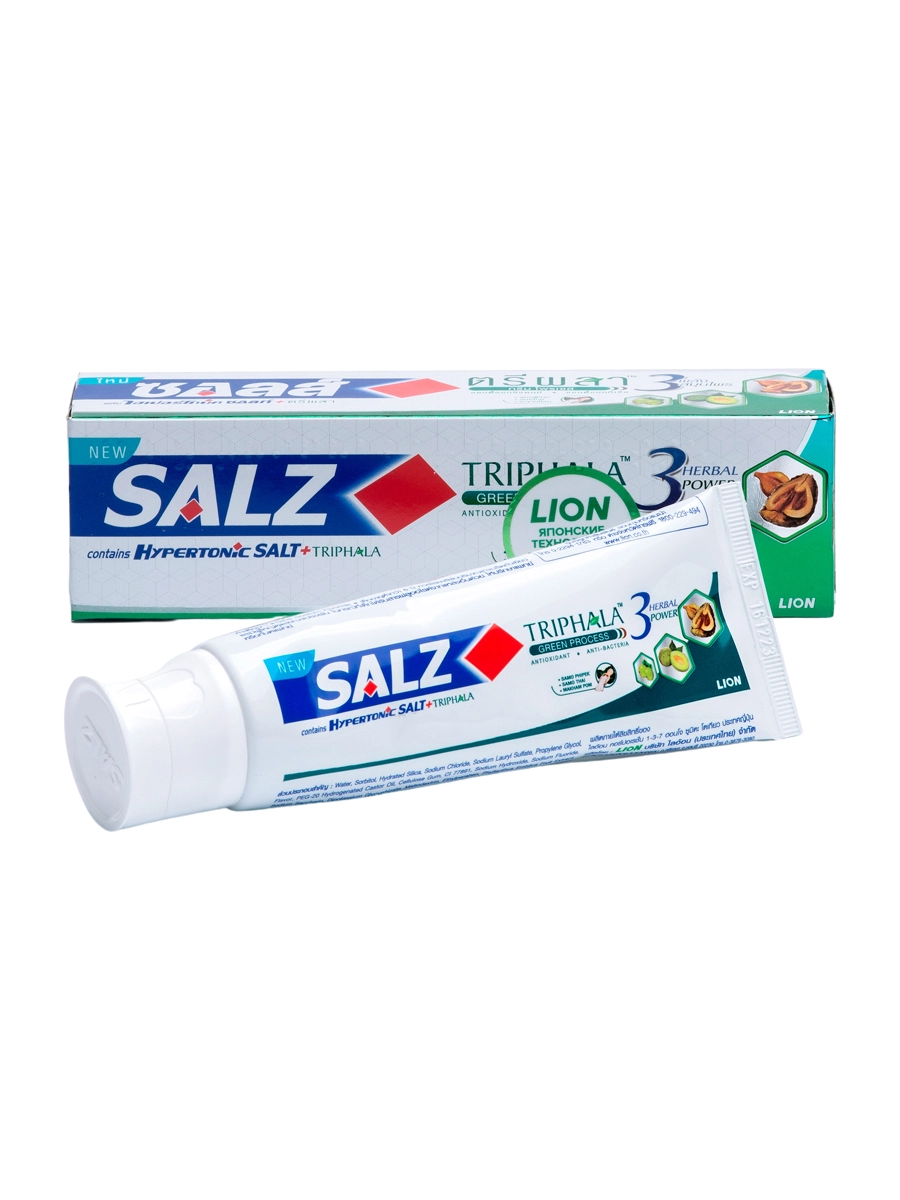 Зубная паста Lion Salz Herbal обеспечивает комплексный уход за полостью рта и бережное отбеливание зубной эмали. Защищает полость рта и предотвращает заболевание десен. В составе особый сбалансированный комплекс из гипертонической соли и аюрведического препарата под названием “трифала”. Для повышения эффективности зубной пасты все компоненты прошли экологически безопасный производственный процесс по международным стандартам. При ежедневном использовании делает зубы белее, а дыхание более свежим. Обладает средне-соленым вкусом. Степень соли: ⅗. RDA: около 70.