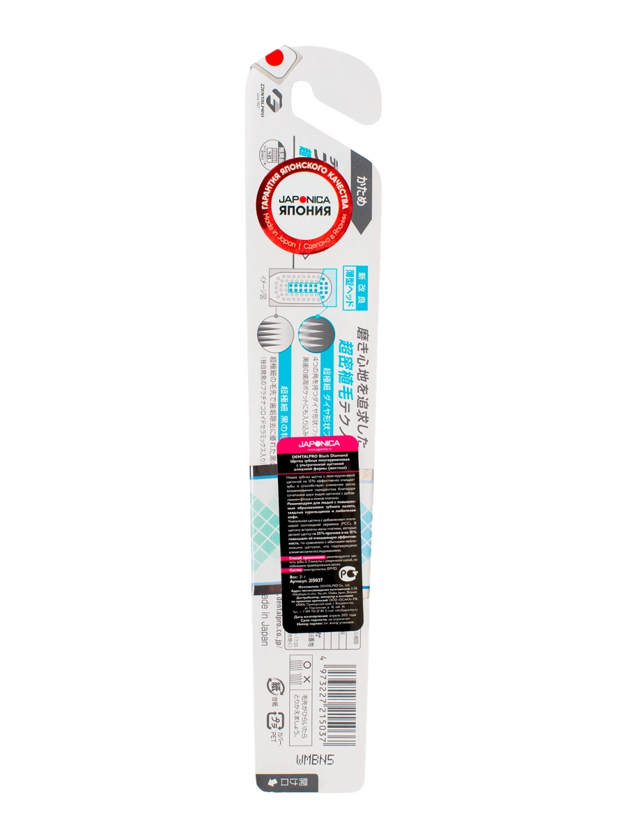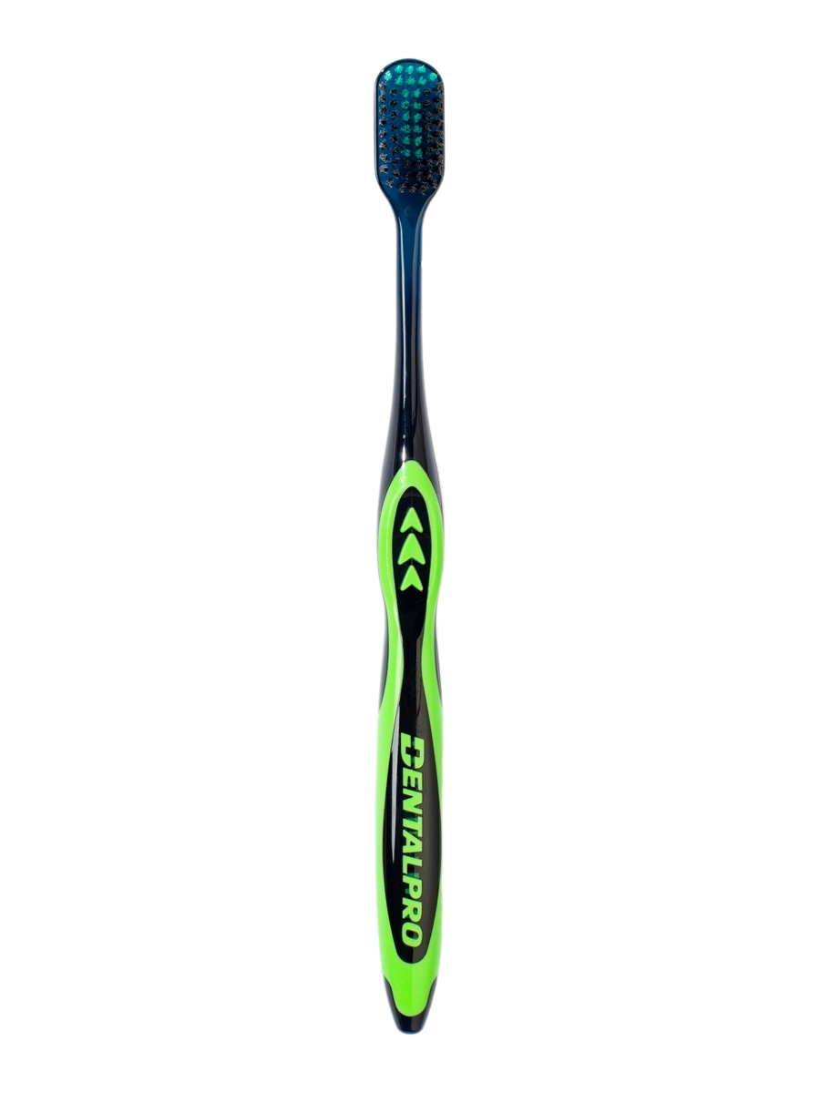 Японская зубная щетка DentalPro с многоуровневой щетиной на 15% эффективнее очищает зубы и способствует снижению риска возникновения пародонтоза благодаря сочетанию двух видов щетинок с добавлением фтора и ионов платины. Рекомендуем для здоровых зубов и при отсутствии ярко выраженных проблем с деснами. В этой зубной щетке DentalPro 500 щетинок.